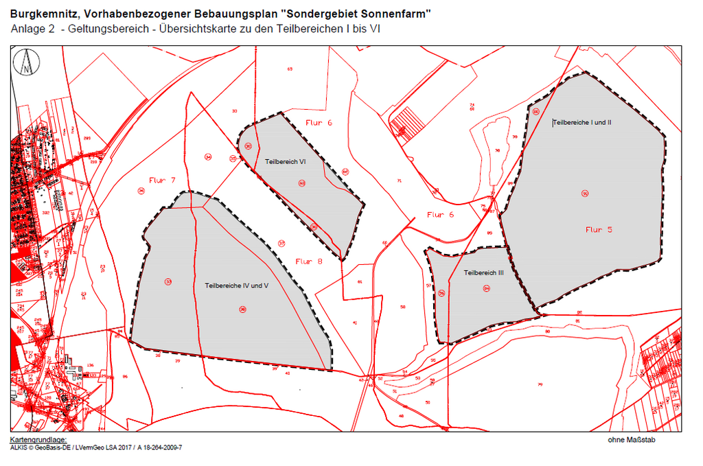 Die Lage des Geltungsbereiches des Vorhabenbezogenen Bebauungsplanes mit den Teilbereichen I bis VI ist nachfolgend zu dieser Bekanntmachung dargestellt.
